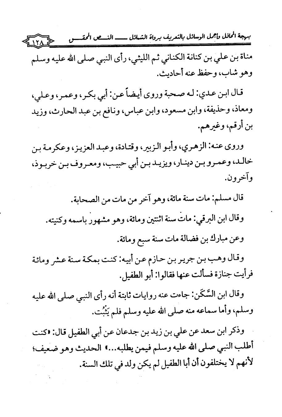 وذكر ابن سعد عن علي بن زيد بن جدعان عن أبي الطفيل قال: «كنت أطلب النبي صلى الله عليه وسلم فيمن يطلبه ... » الحديث وهو ضعيف؛ لأنهم لا يختلفون أن أبا الطفيل لم يكن ولد في تلك السنة.