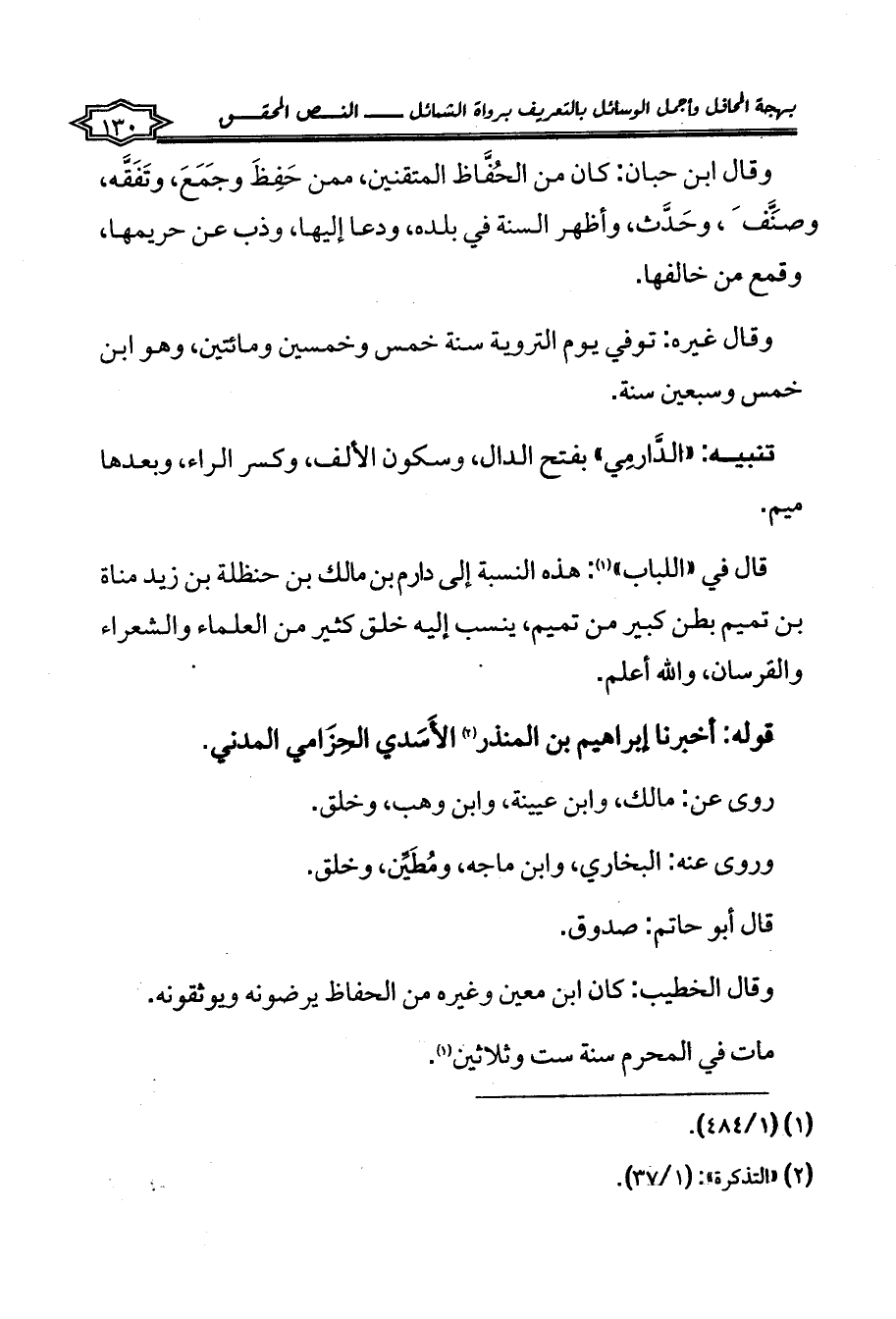 تنبيه: «الدَّارمِي» بفتح الدال، وسكون الألف، وكسر الراء، وبعدها ميم.