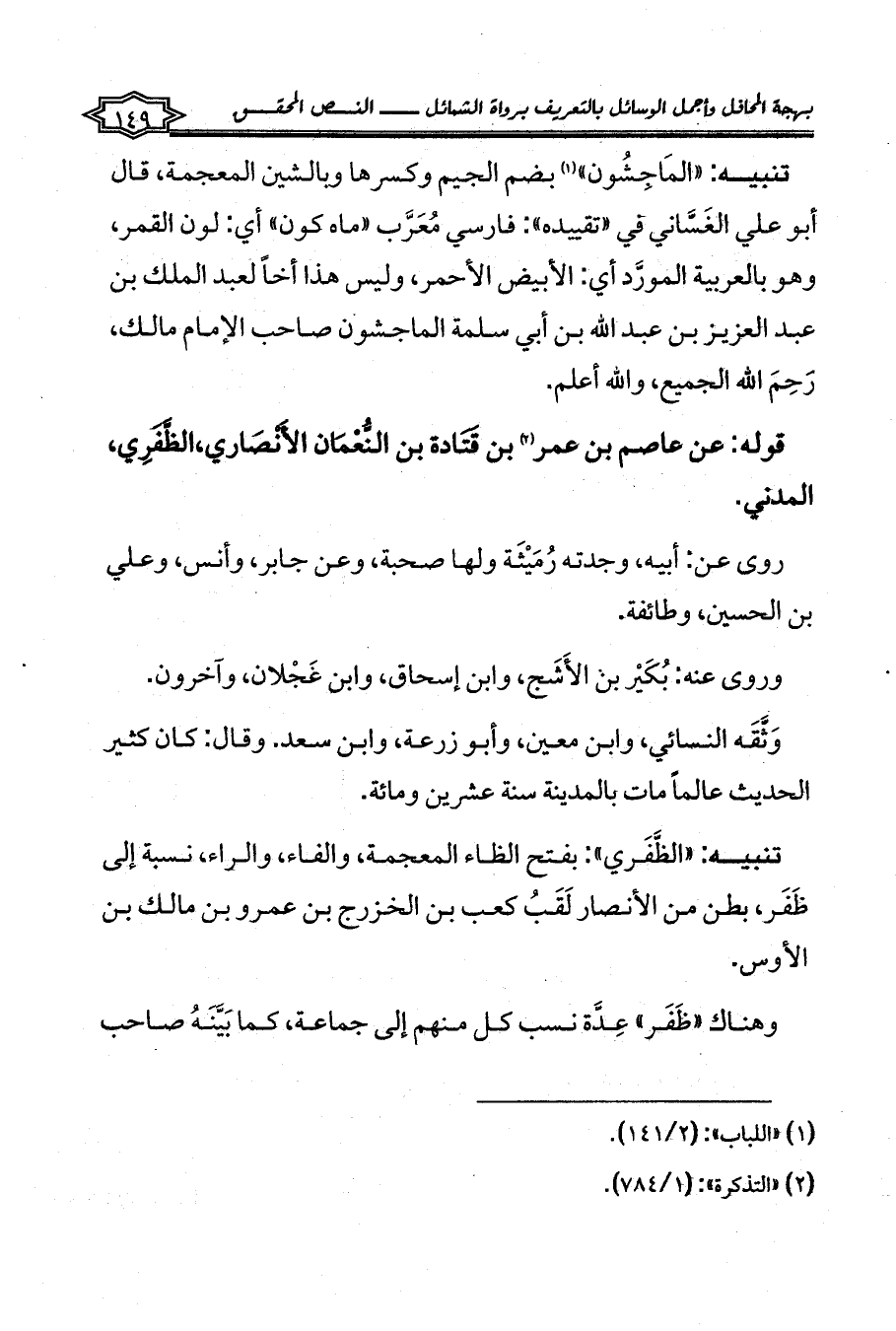 قوله: عن عاصم بن عمر (¬2) بن قَتَادة بن النُّعْمَان الأَنْصَاري، الظَّفَرِي، المدني.