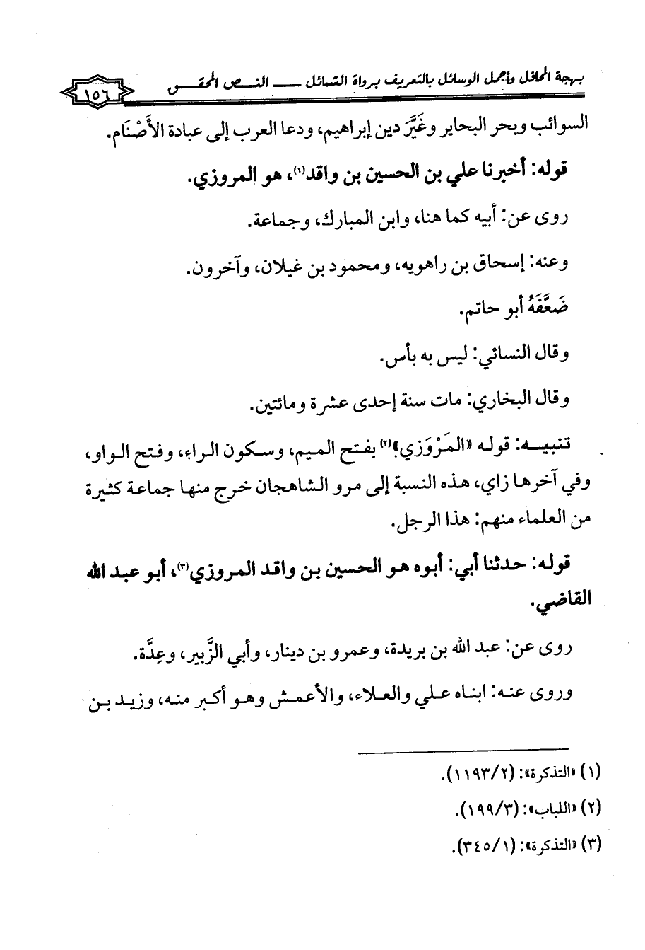 تنبيه: قوله «الَمرْوَزي» (¬2) بفتح الميم، وسكون الراء، وفتح الواو، وفي آخرها زاي، هذه النسبة إلى مرو الشاهجان خرج منها جماعة كثيرة من العلماء منهم: هذا الرجل.