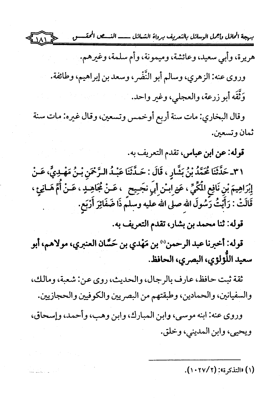 31 - حَدَّثَنَا مُحَمَّدُ بْنُ بَشَّارٍ، قَالَ: حَدَّثَنَا عَبْدُ الرَّحْمَنِ بْنُ مَهْدِيٍّ، عَنْ إِبْرَاهِيمَ بْنِ نَافِعٍ الْمَكِّيِّ، عَنِ ابْنِ أَبِي نَجِيحٍ، عَنْ مُجَاهِدٍ، عَنْ أُمِّ هَانِئٍ، قَالَتْ: رَأَيْتُ رَسُولَ اللهِ صلى الله عليه وسلم ذَا ضَفَائِرَ أَرْبَعٍ.