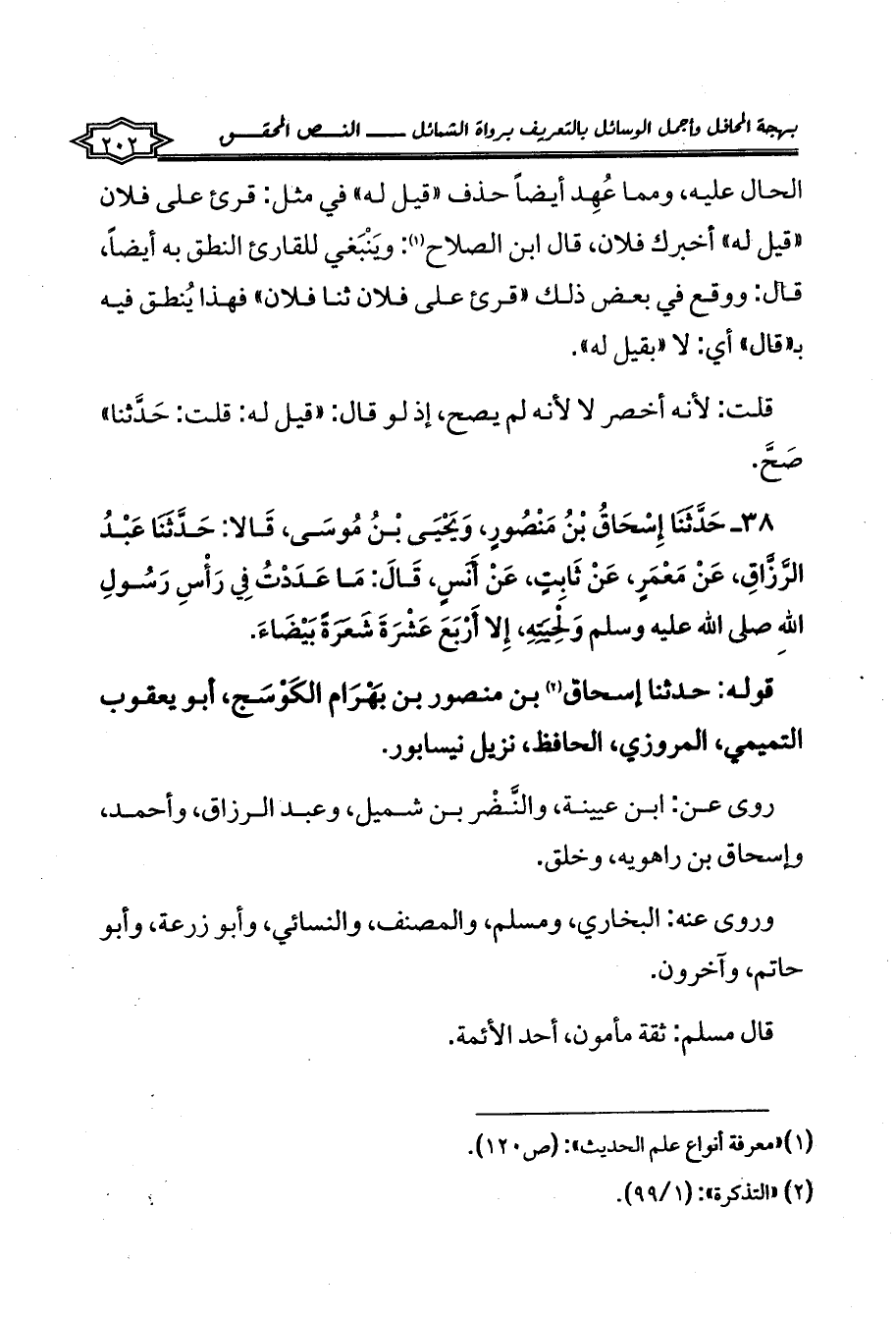 (¬1) «معرفة أنواع علم الحديث»: (ص120).