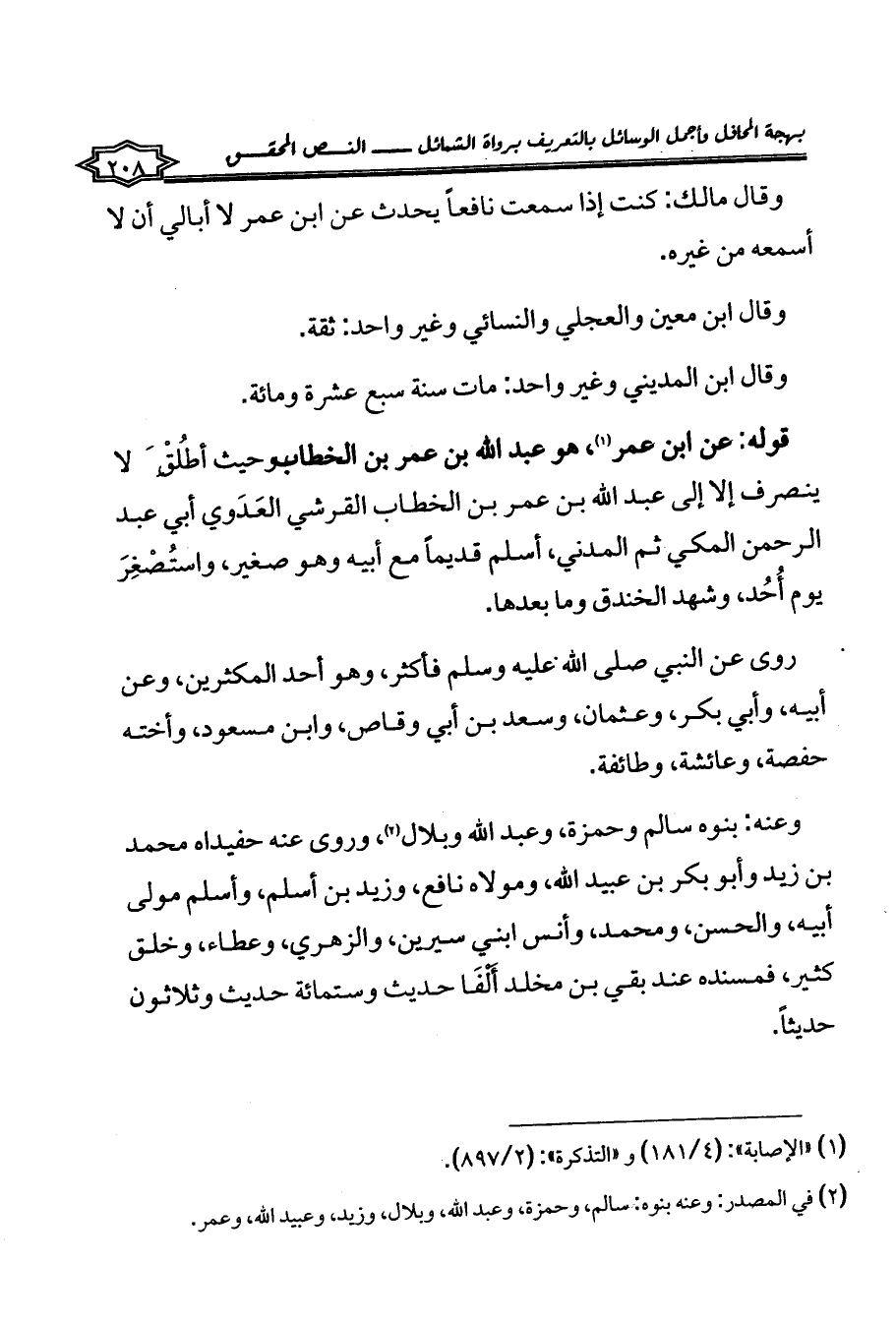 (¬2) في المصدر: وعنه بنوه: سالم، وحمزة، وعبد الله، وبلال، وزيد، وعبيد الله، وعمر.