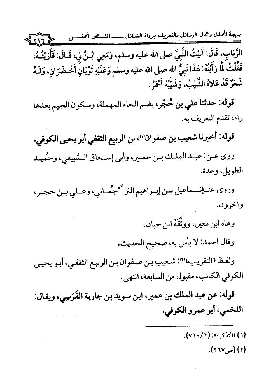 ولفظ «التقريب» (¬2): شعيب بن صفوان بن الربيع الثقفي، أبو يحيى الكوفي الكاتب، مقبول من السابعة، انتهى.