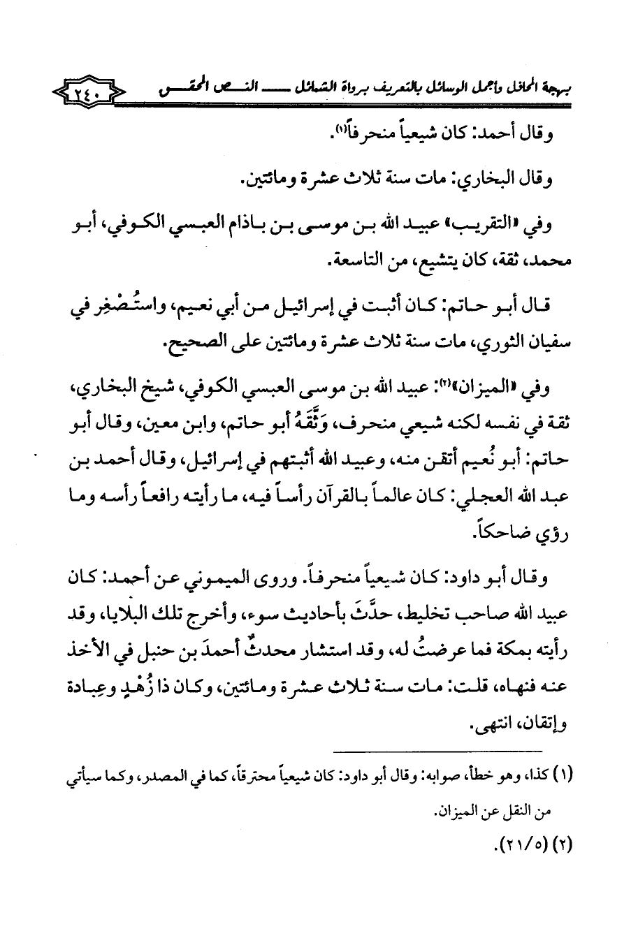 وفي «التقريب» عبيد الله بن موسى بن باذام العبسي الكوفي، أبو محمد، ثقة، كان يتشيع، من التاسعة.