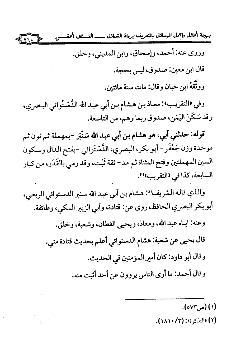والذي قاله الشريف (¬2): هشام بن أبي عبد الله سنبر الدستوائي الربعي، أبو بكر البصري الحافظ، روى عن: قتادة، وأبي الزبير المكي، وطائفة.
