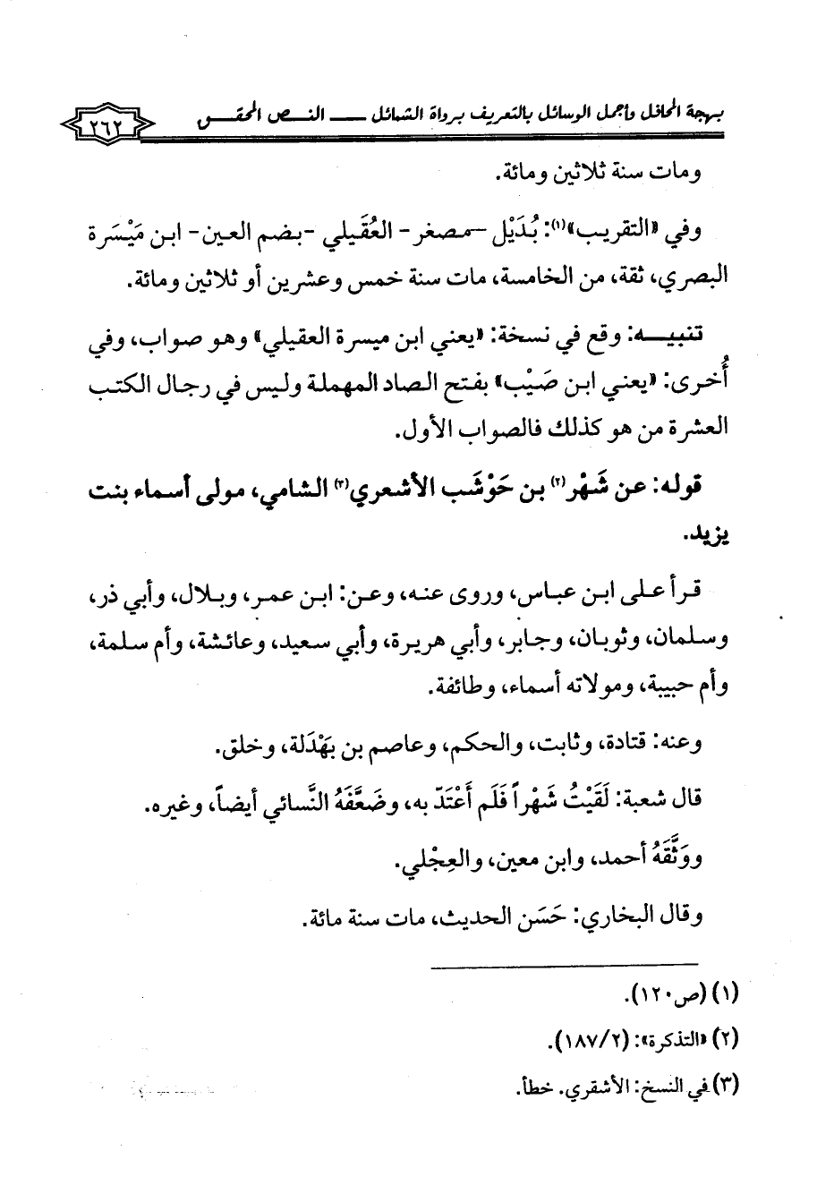 قال شعبة: لَقَيْتُ شَهْراً فَلَم أَعْتَدّ به، وضَعَّفَهُ النَّسائي أيضاً، وغيره.