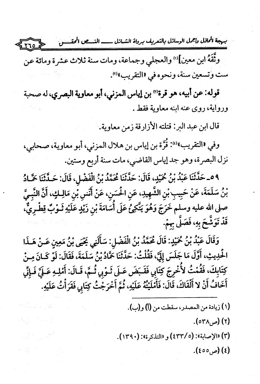 وَقَالَ عَبْدُ بْنُ حُمَيْدٍ: قَالَ مُحَمَّدُ بْنُ الْفَضْلِ: سَأَلَنِي يَحْيَى بْنُ مَعِينٍ عَنْ هَذَا الْحَدِيثِ، أَوَّلَ مَا جَلَسَ إِلَيَّ، فَقُلْتُ: حَدَّثَنَا حَمَّادُ بْنُ سَلَمَةَ، فَقَالَ: لَوْ كَانَ مِنْ كِتَابِكَ، فَقُمْتُ لأُخْرِجَ كِتَابِي فَقَبَضَ عَلَى ثَوْبِي ثُمَّ، قَالَ: أَمْلِهِ عَلَيَّ فَإِنِّي أَخَافُ أَنْ لا أَلْقَاكَ، قَالَ: فَأَمْلَيْتُهُ عَلَيْهِ، ثُمَّ أَخْرَجْتُ كِتَابِي فَقَرَأْتُ عَلَيْهِ.