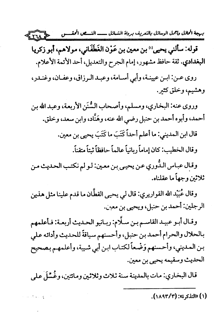 قوله: سألني يحيى (¬1) بن معين بن عَوْن الغَطَفَاني، مولاهم، أبو زكريا البغدادي. ثقة حافظ مشهور، إمام الجرح والتعديل، أحد الأئمة الأعلام.