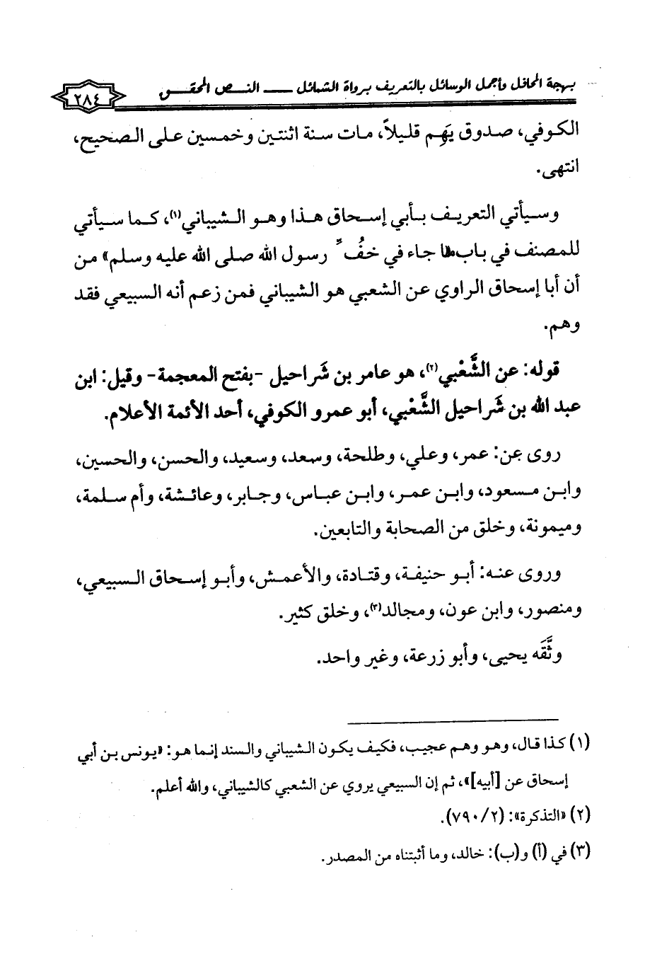 وسيأتي التعريف بأبي إسحاق هذا وهو الشيباني (¬1)، كما سيأتي للمصنف في باب «ما جاء في خُفِّ رسول الله صلى الله عليه وسلم» من أن أبا إسحاق الراوي عن الشعبي هو الشيباني فمن زعم أنه السبيعي فقد وهم.