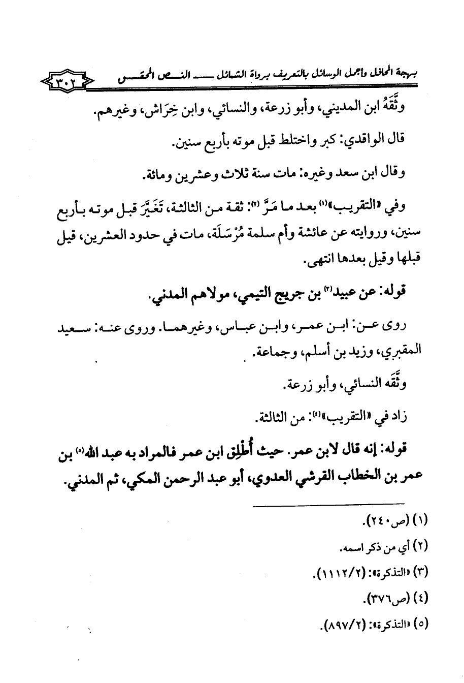 وفي «التقريب» (¬1) بعد ما مَرَّ (¬2): ثقة من الثالثة، تَغَيَّرَ قبل موته بأربع سنين، وروايته عن عائشة وأم سلمة مُرْسَلَة، مات في حدود العشرين، قيل قبلها وقيل بعدها انتهى.