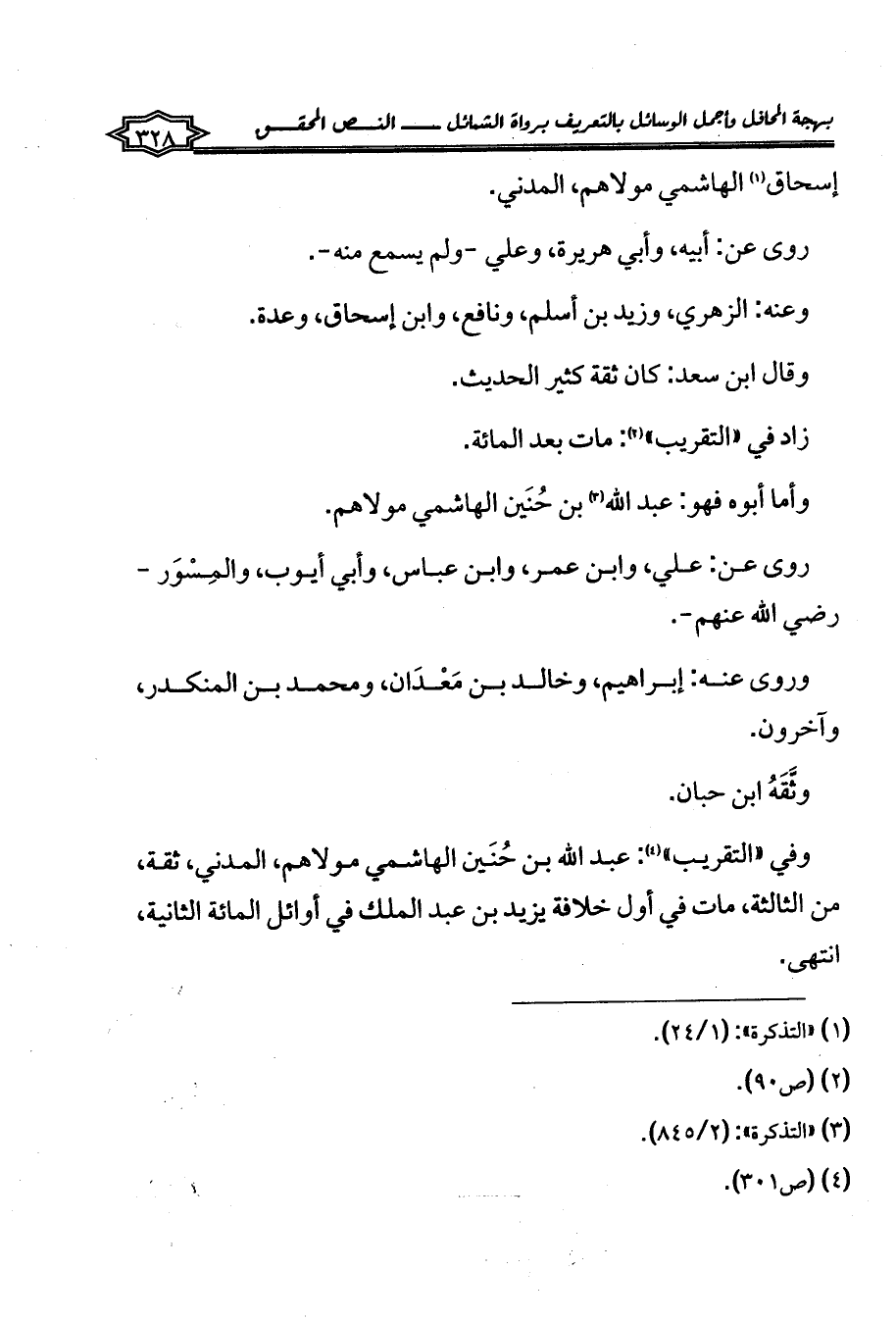 وفي «التقريب» (¬4): عبد الله بن حُنَين الهاشمي مولاهم، المدني، ثقة، من الثالثة، مات في أول خلافة يزيد بن عبد الملك في أوائل المائة الثانية، انتهى.