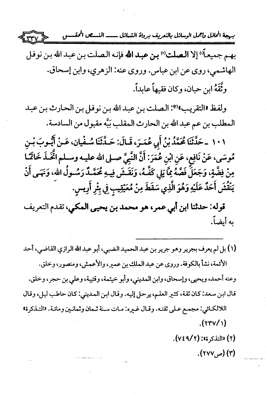 ولفظ «التقريب» (¬3): الصلت بن عبد الله بن نوفل بن الحارث بن عبد المطلب بن عم عبد الله بن الحارث المقلب بَبَّه مقبول من السادسة.