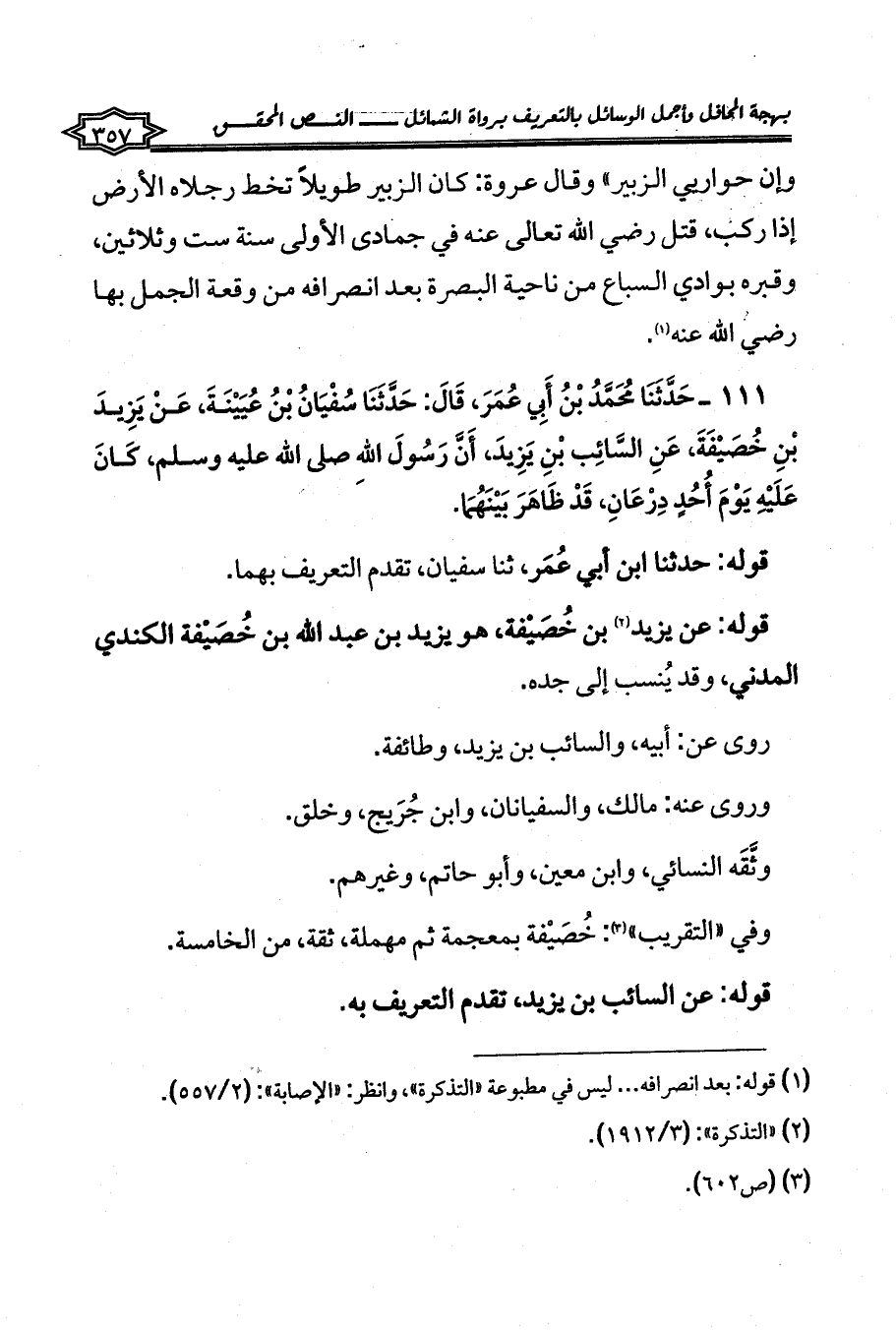 111 - حَدَّثَنَا مُحَمَّدُ بْنُ أَبِي عُمَرَ، قَالَ: حَدَّثَنَا سُفْيَانُ بْنُ عُيَيْنَةَ، عَنْ يَزِيدَ بْنِ خُصَيْفَةَ، عَنِ السَّائِب بْنِ يَزِيدَ، أَنَّ رَسُولَ اللهِ صلى الله عليه وسلم، كَانَ عَلَيْهِ يَوْمَ أُحُدٍ دِرْعَانِ، قَدْ ظَاهَرَ بَيْنَهُمَا.