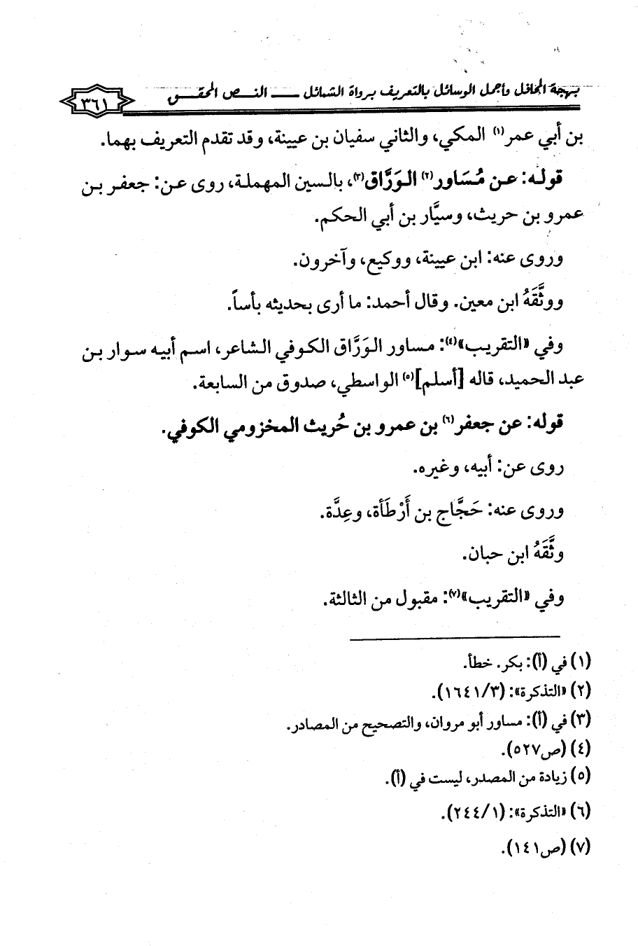 قوله: عن مُسَاور (¬2) الوَرَّاق (¬3)، بالسين المهملة، روى عن: جعفر بن عمرو بن حريث، وسيَّار بن أبي الحكم.
