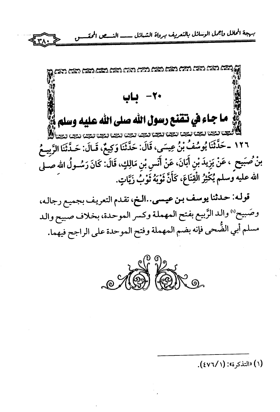 126 - حَدَّثَنَا يُوسُفُ بْنُ عِيسَى، قَالَ: حَدَّثَنَا وَكِيعٌ، قَالَ: حَدَّثَنَا الرَّبِيعُ بْنُ صَبِيحٍ، عَنْ يَزِيدَ بْنِ أَبَانَ، عَنْ أَنَسِ بْنِ مَالِكٍ، قَالَ: كَانَ رَسُولُ اللهِ صلى الله عليه وسلم يُكْثِرُ الْقِنَاعَ، كَأَنَّ ثَوْبَهُ ثَوْبُ زَيَّاتٍ.