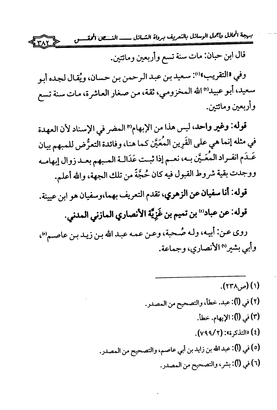 قوله: وغير واحد، ليس هذا من الإبهام (¬3) المضر في الإسناد لأن العهدة في مثله إنما هي على القَرِين المُعَيَّن كما هنا، وفائدة التعرُّض للمبهم بيان عَدَم انفراد المُعَيَّن به، نعم إذا ثبت عَدَالة المبهم بعد زوال إبهامه ووجدت بقية شروط القبول فيه كان حُجَّةً من تلك الجهة، والله أعلم.
