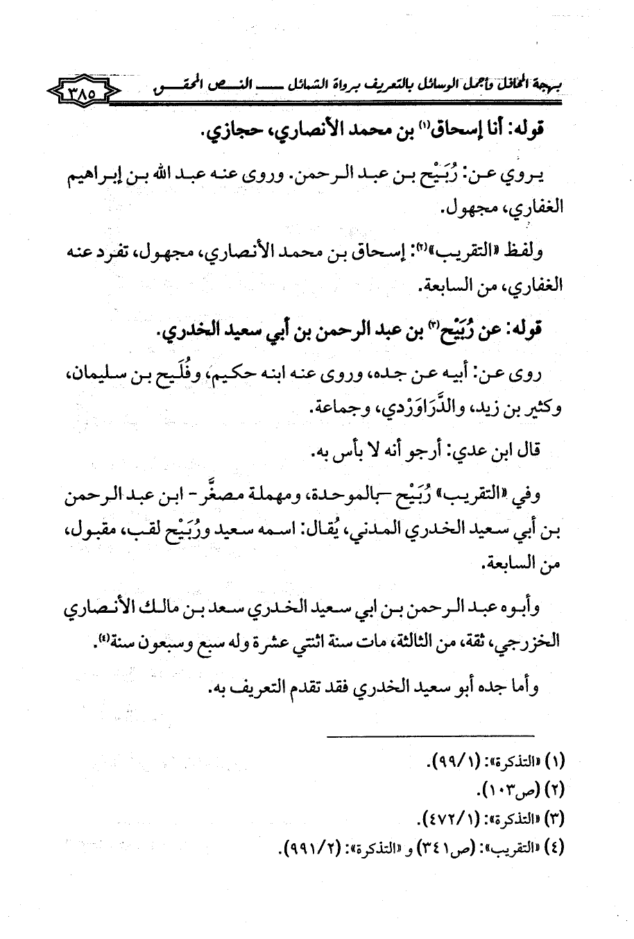 وفي «التقريب» رُبَيْح -بالموحدة، ومهملة مصغَّر- ابن عبد الرحمن بن أبي سعيد الخدري المدني، يُقال: اسمه سعيد ورُبَيْح لقب، مقبول، من السابعة.