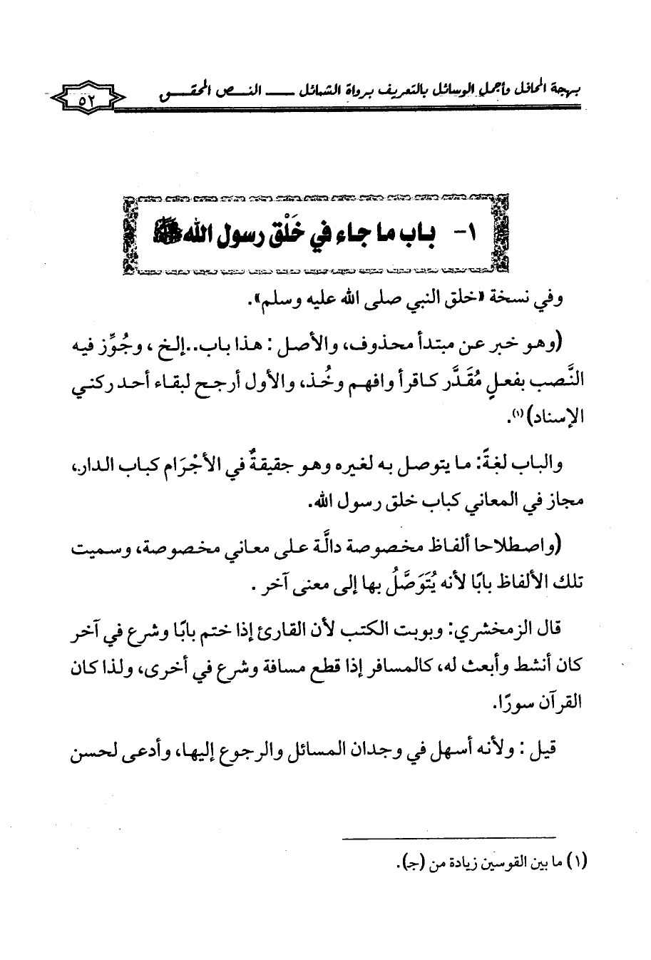 1 - باب ما جاء في خَلْق رسول الله - صلى الله عليه وسلم -