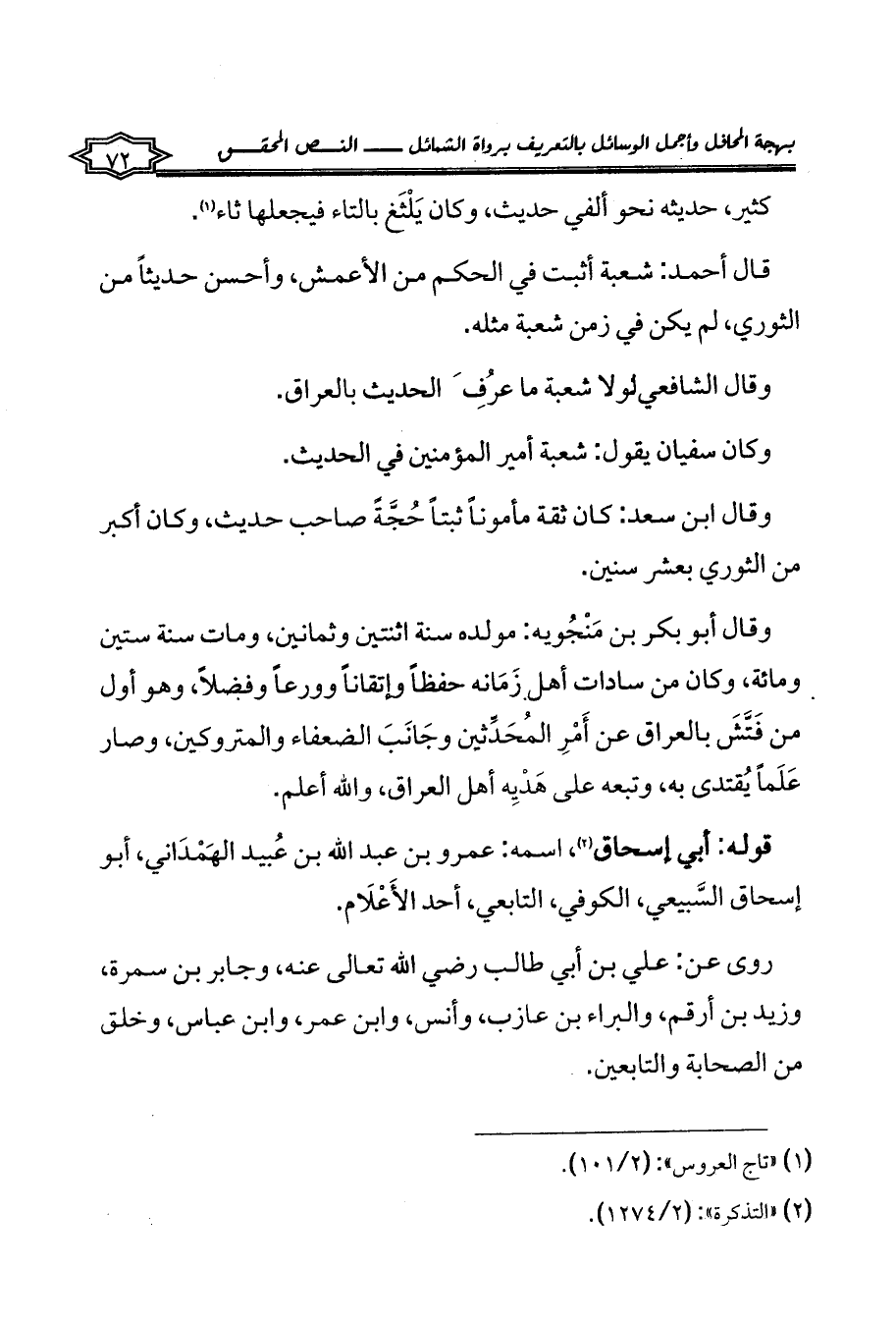 وقال الشافعي: لولا شعبة ما عُرِفَ الحديث بالعراق.