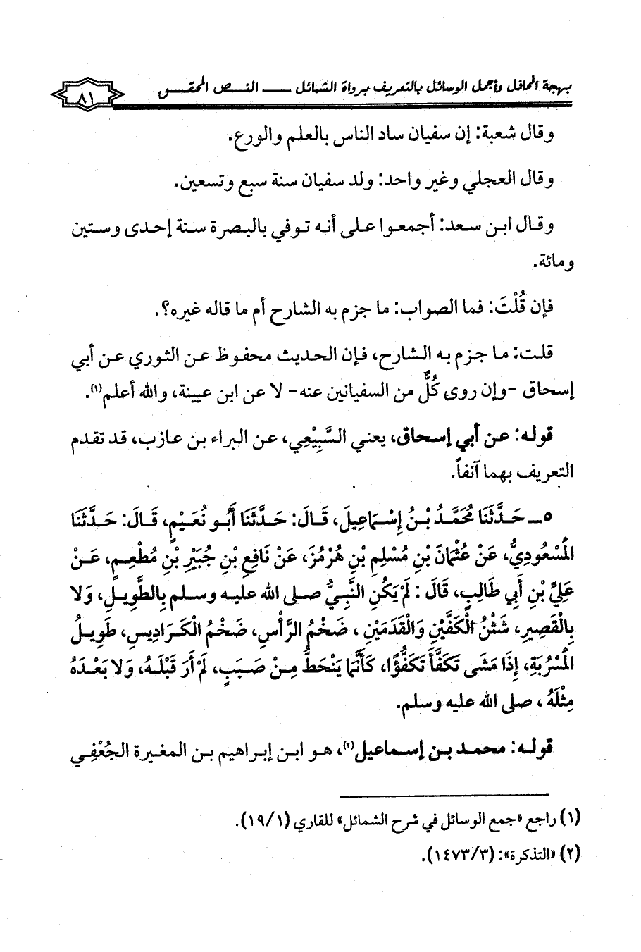(¬1) راجع «جمع الوسائل في شرح الشمائل» للقاري (1/ 19).
