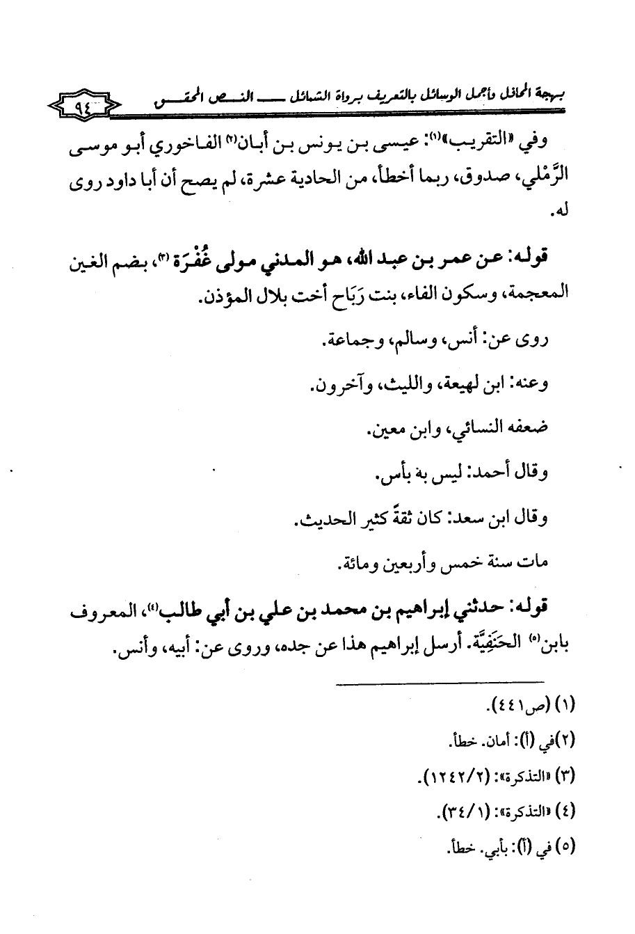 قوله: حدثني إبراهيم بن محمد بن علي بن أبي طالب (¬4)، المعروف بابن (¬5) الحَنَفِيَّة. أرسل إبراهيم هذا عن جده، وروى عن: أبيه، وأنس.