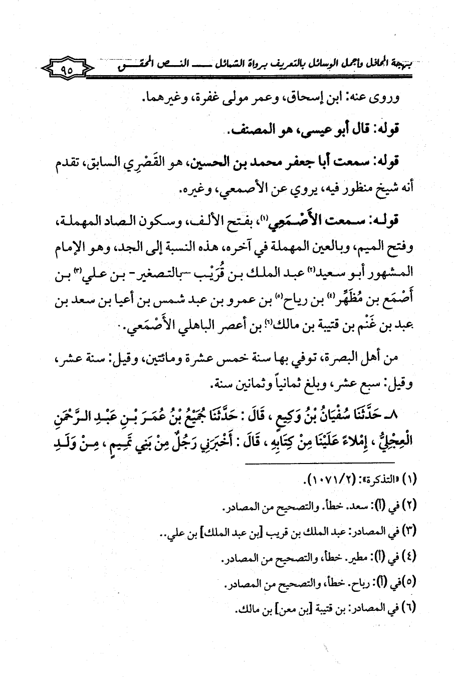 قوله: سمعت أبا جعفر محمد بن الحسين، هو القَصْرِي السابق، تقدم أنه شيخ منظور فيه، يروي عن الأصمعي، وغيره.