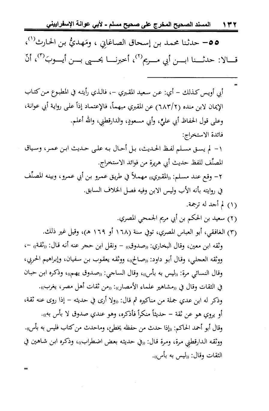 55 - حدثنا محمد بن إسحاق الصاغانِي، ومَهديُّ بن الحارث (¬1)، قالا: حدثنا ابن أبي مريم (¬2)، أخبرنا يحيى بن أيوبَ (¬3)، أنّ