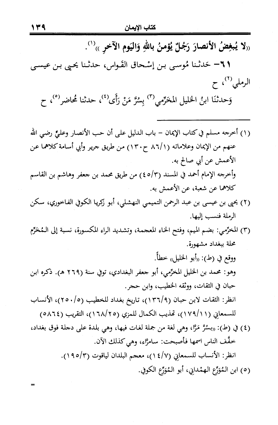 -[140]- وحدثَنا الحسن بن عفَّان (¬5)، وعَباس بن محمد قالا: حدثنا أبو يحيى الحِمَّاني (¬6)، جمَيعُهُم عَن الأعمش، عَن عَدي بن ثابتٍ، عن زر بن