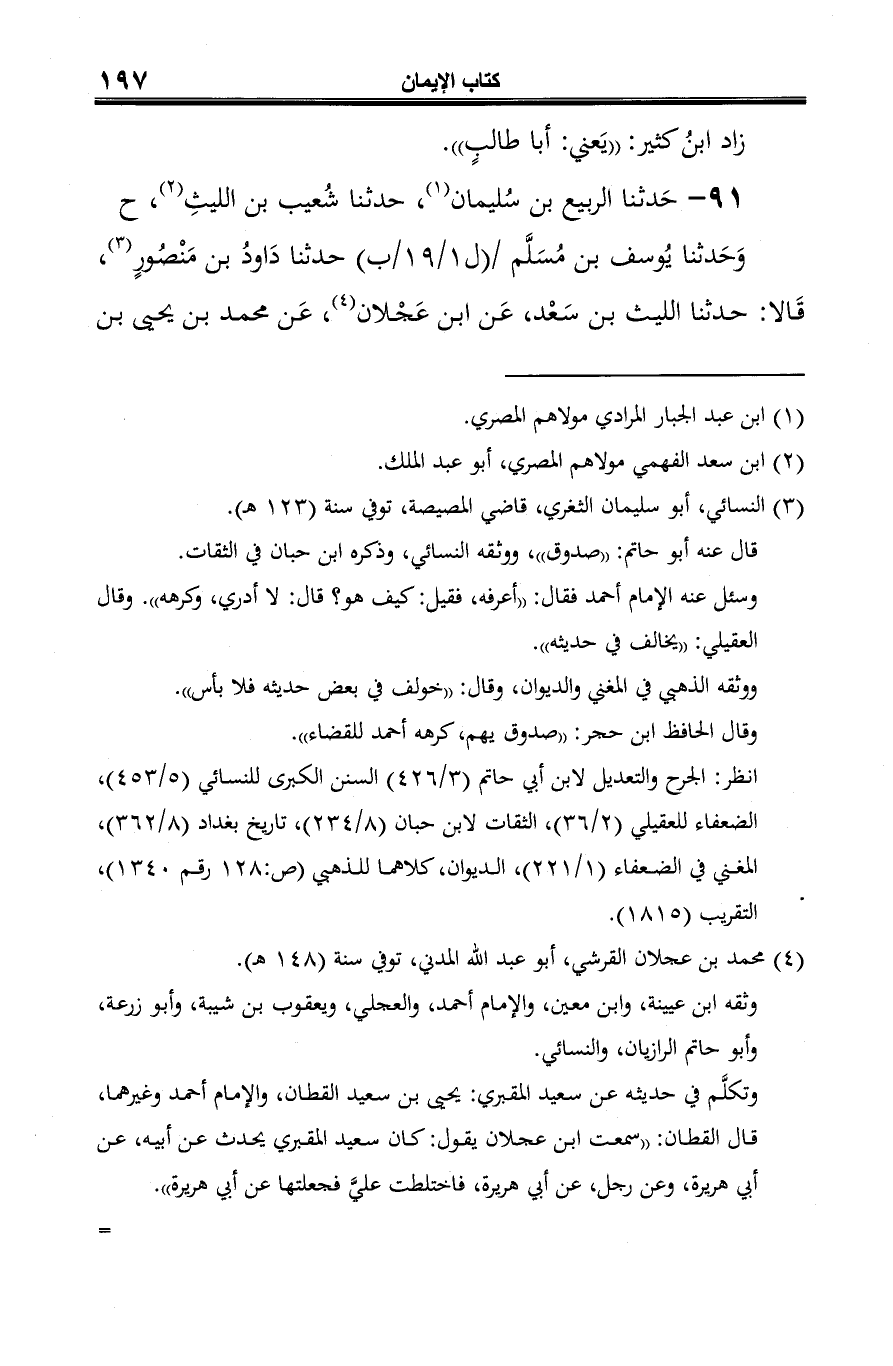 91 - حَدثنا الرَّبيع بن سُليمان (¬1)، حدثنا شُعيب بن الليثِ (¬2)، ح