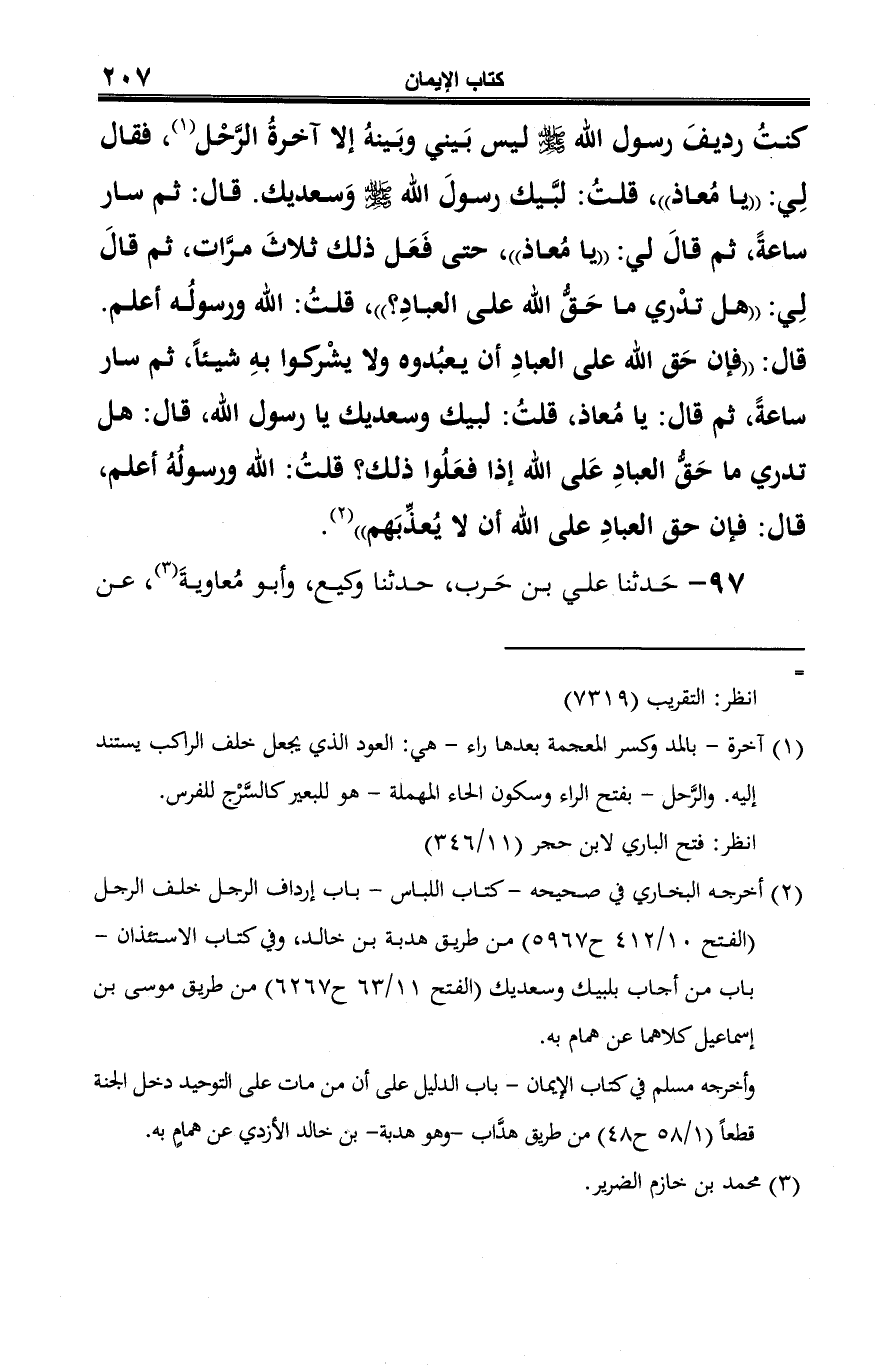 -[210]- = إلى أنه في نسخة "أبو معاوية" بدل "أبي عوانة" وهو الصواب، ويؤيِّده أنه هو الذي جزم به ابن خزيمة في التوحيد (2/ 85 ح 565).