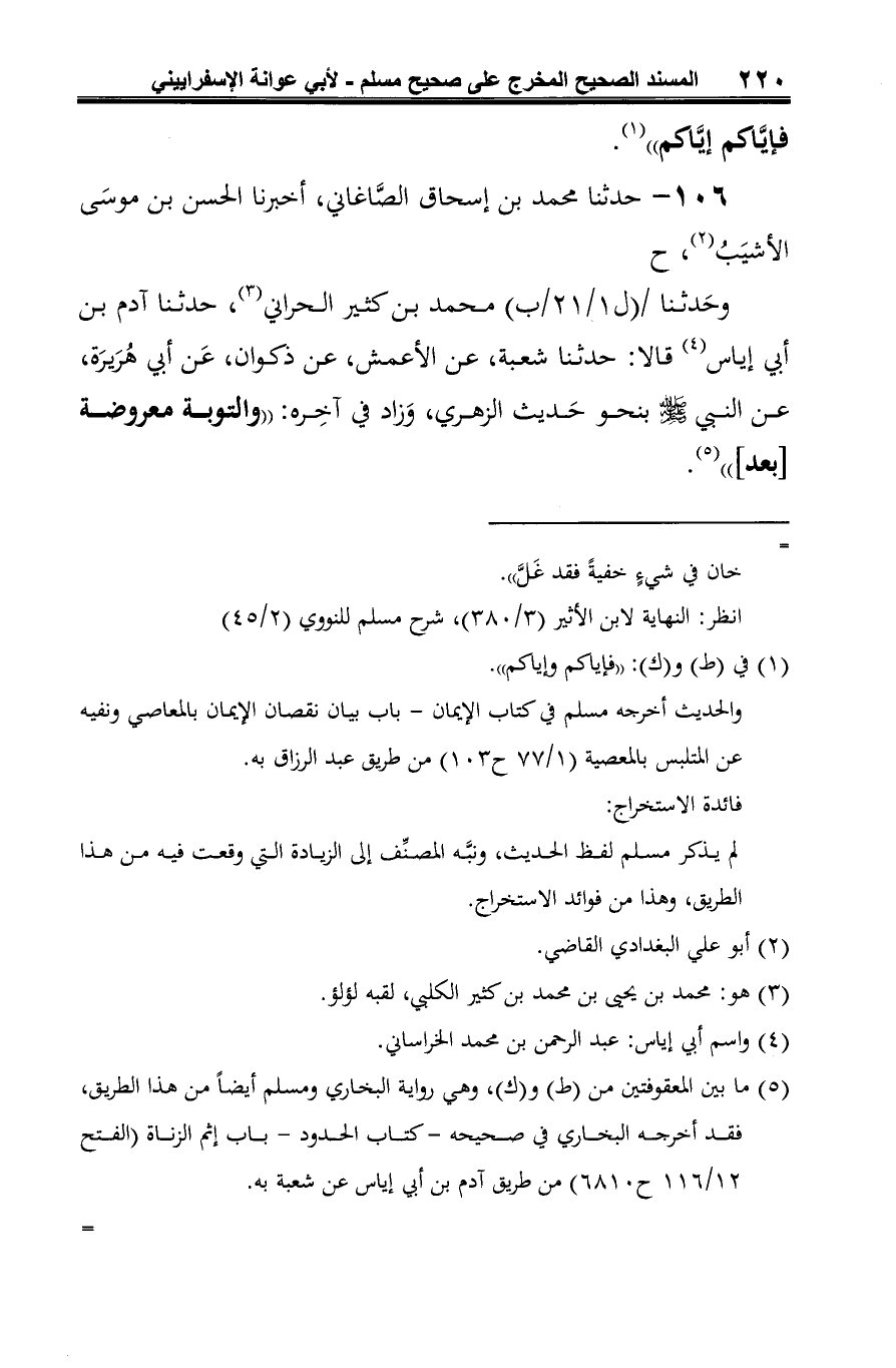كتاب مستخرج أبي عوانة ط الجامعة الإسلامية (اسم الجزء: 1)