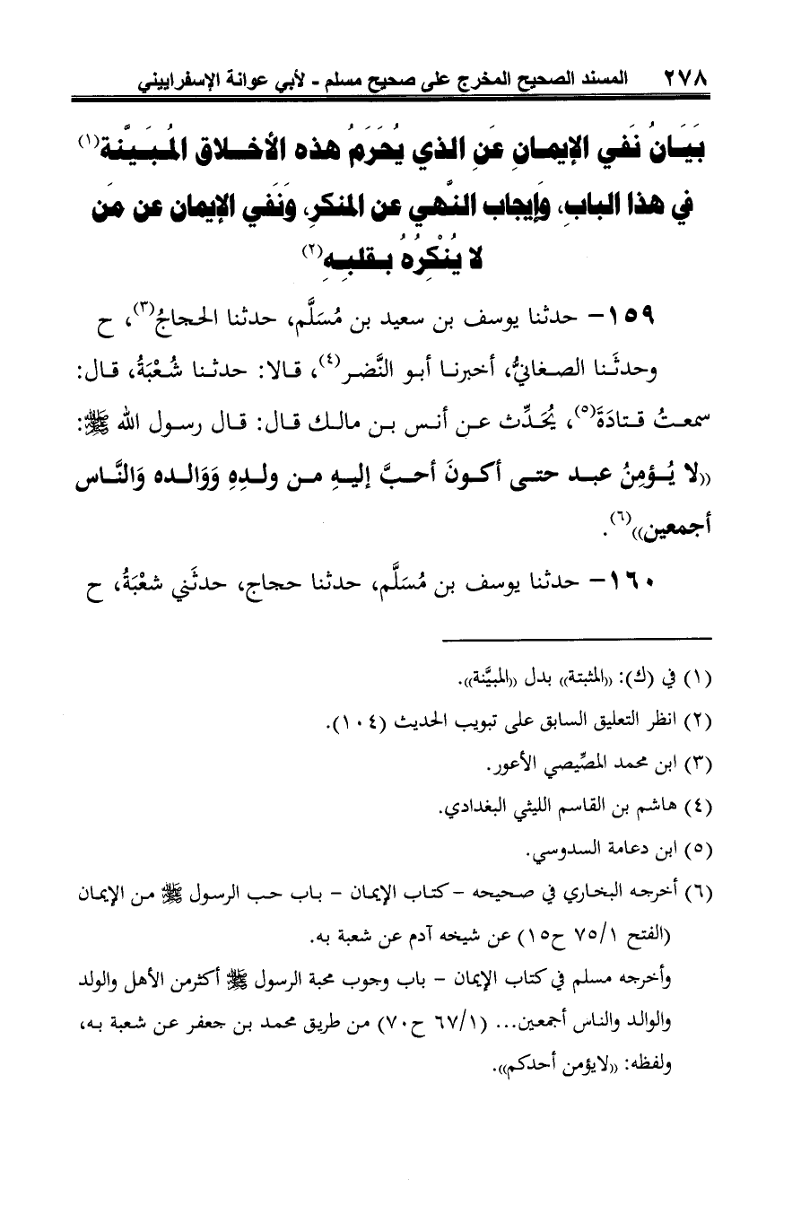 160 - حدثنا يوسف بن مُسَلَّم، حدثنا حجاج، حدثَني شعْبَةُ، ح