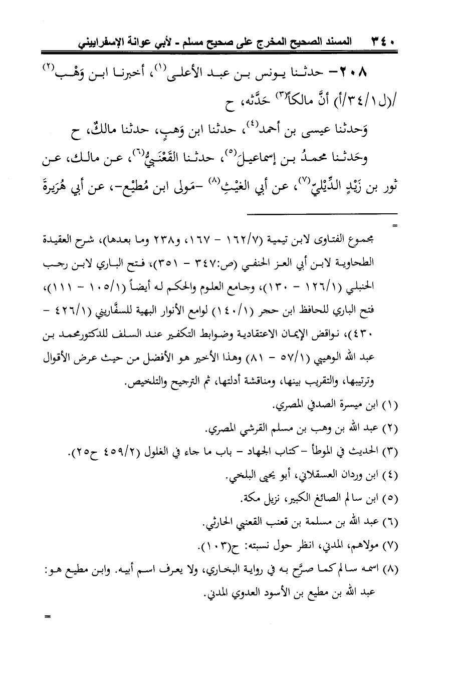 208 - حدثنا يونس بن عبد الأعلى (¬1)، أخبرنا ابن وَهْب (¬2) أنَّ مالكًا (¬3) حَدَّثه، ح