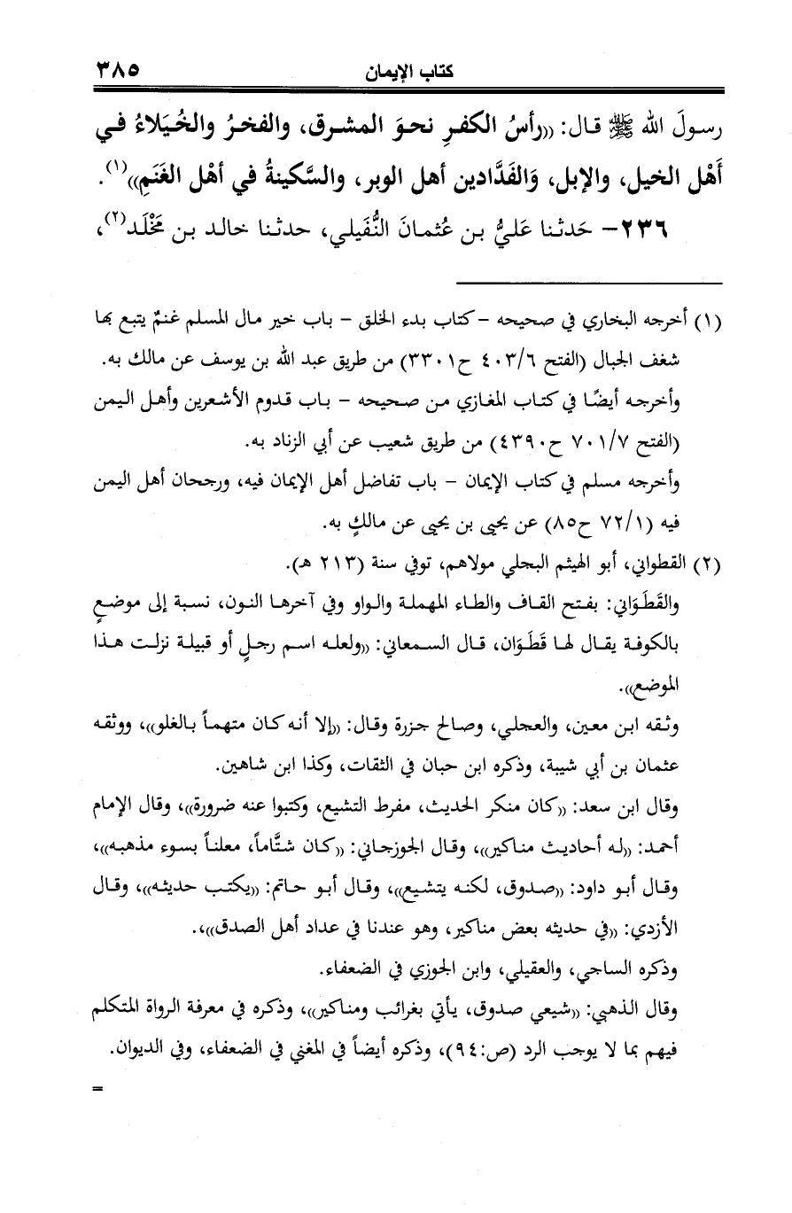 236 - حَدثنا عَليُّ بن عُثمانَ النُّفَيلي، حدثنا خالد بن مَخْلَد (¬1)،