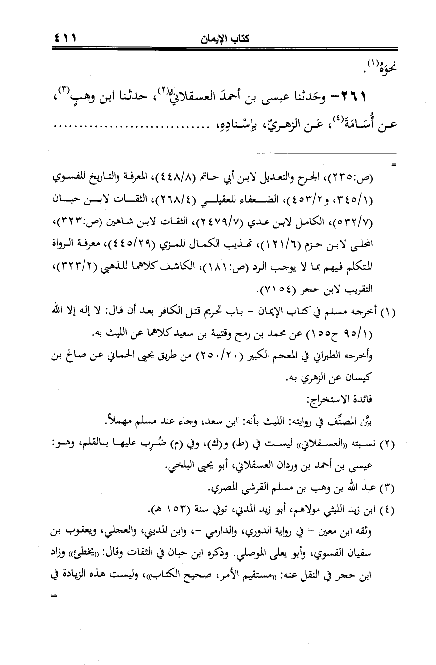 261 - وحَدثنا عيسى بن أحمدَ العسقلاني (¬1)، حدثنا ابن وهبٍ (¬2)، عن أُسَامَةَ (¬3)، عَن الزهريّ، بإسْنادِهِ،