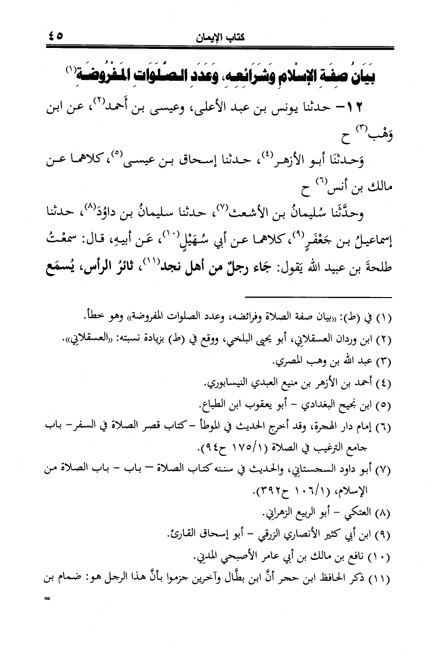 بَيَانُ صفَةِ الإسْلام وَشَرَائِعِهِ، وَعدَدِ الصَّلَوَاتِ المَفْرُوضةِ (¬1)