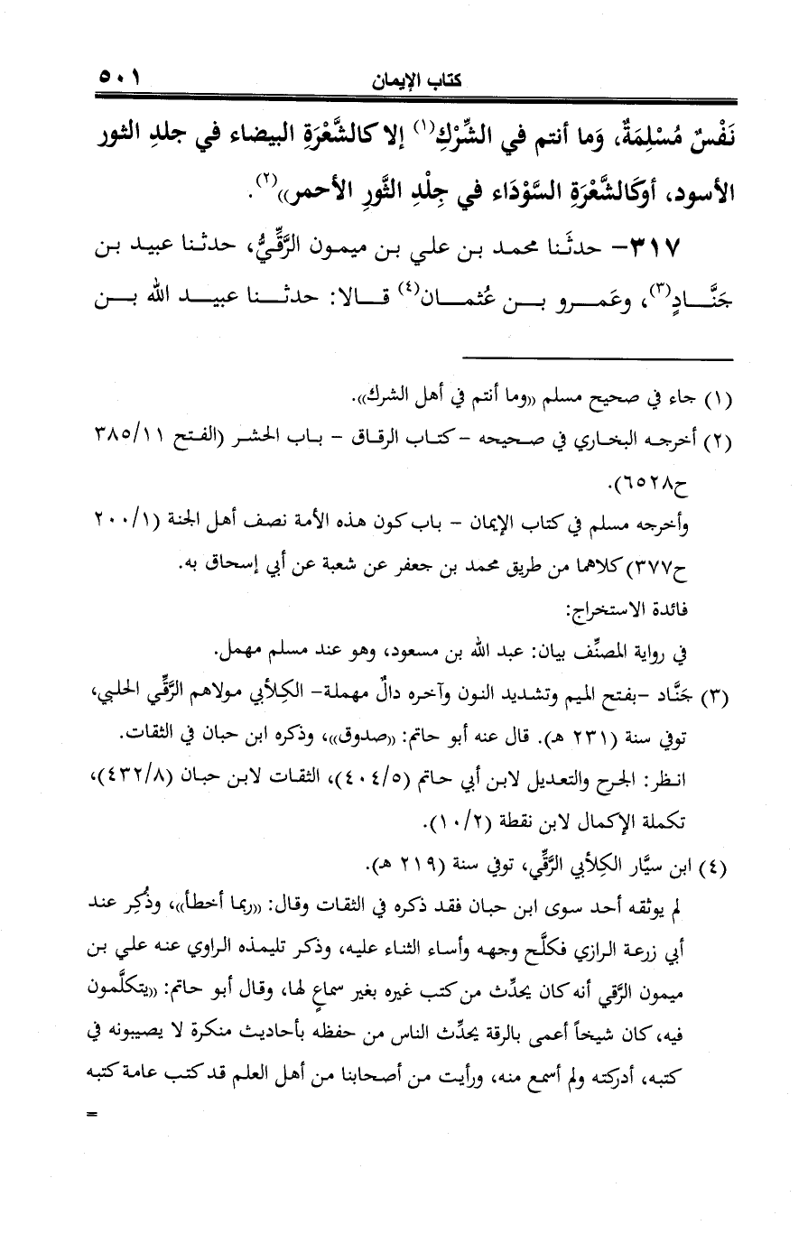 317 - حدثَنا محمد بن علي بن ميمون الرَّقِّيُّ، حدثنا عبيد بن جَنَّادٍ (¬1)، وعَمرو بن عُثمان (¬2) قالا: حدثنا عبيد الله بن
