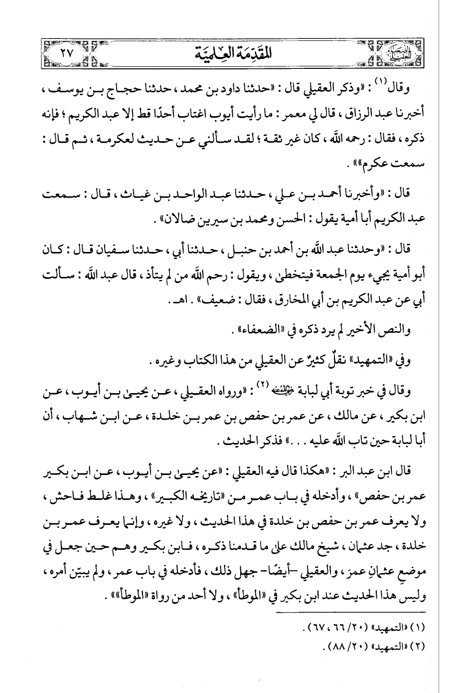 وفي «التمهيد» نقلٌ كثيرٌ عن العقيلي من هذا الكتاب وغيره.