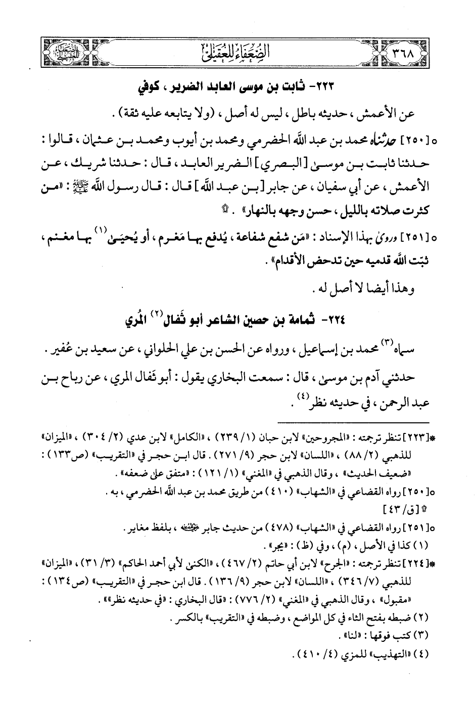 223 - ثابت بن موسى العابد الضرير، كوفي (1)