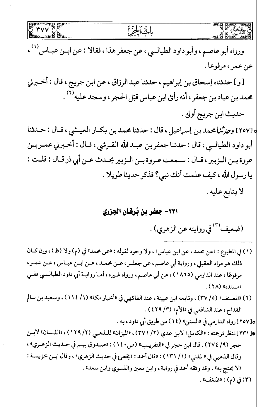 [257] (3) وحدثنا محمد بن إسماعيل، قال: حدثنا محمد بن بكار العيشي، قال: حدثنا أبو داود الطيالسي، قال: حدثنا جعفر بن عبد الله القرشي، قال: أخبرني عمر بن عروة بن الزبير، قال: سمعت عروة بن الزبير يحدث عن أبي ذر قال: قلت: يا رسول الله، كيف علمت أنك نبي؟ فذكر حديثا طويلا.