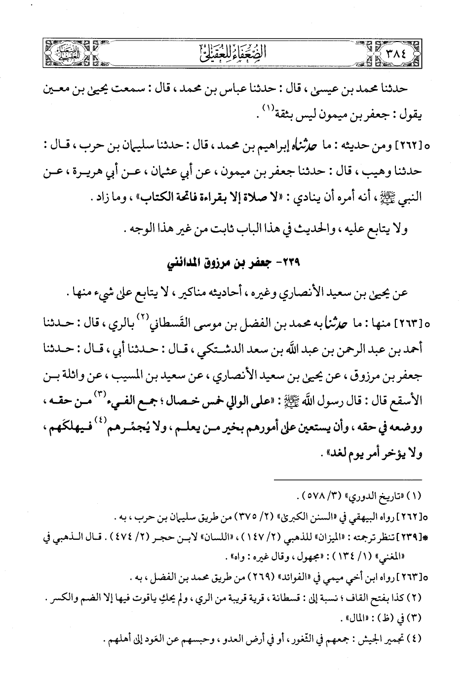 (3) * [239] تنظر ترجمته: «الميزان» للذهبي (2/ 147) , «اللسان» لابن حجر (2/ 474). قال الذهبي في «المغني» (1/ 134): «مجهول، وقال غيره: واه».