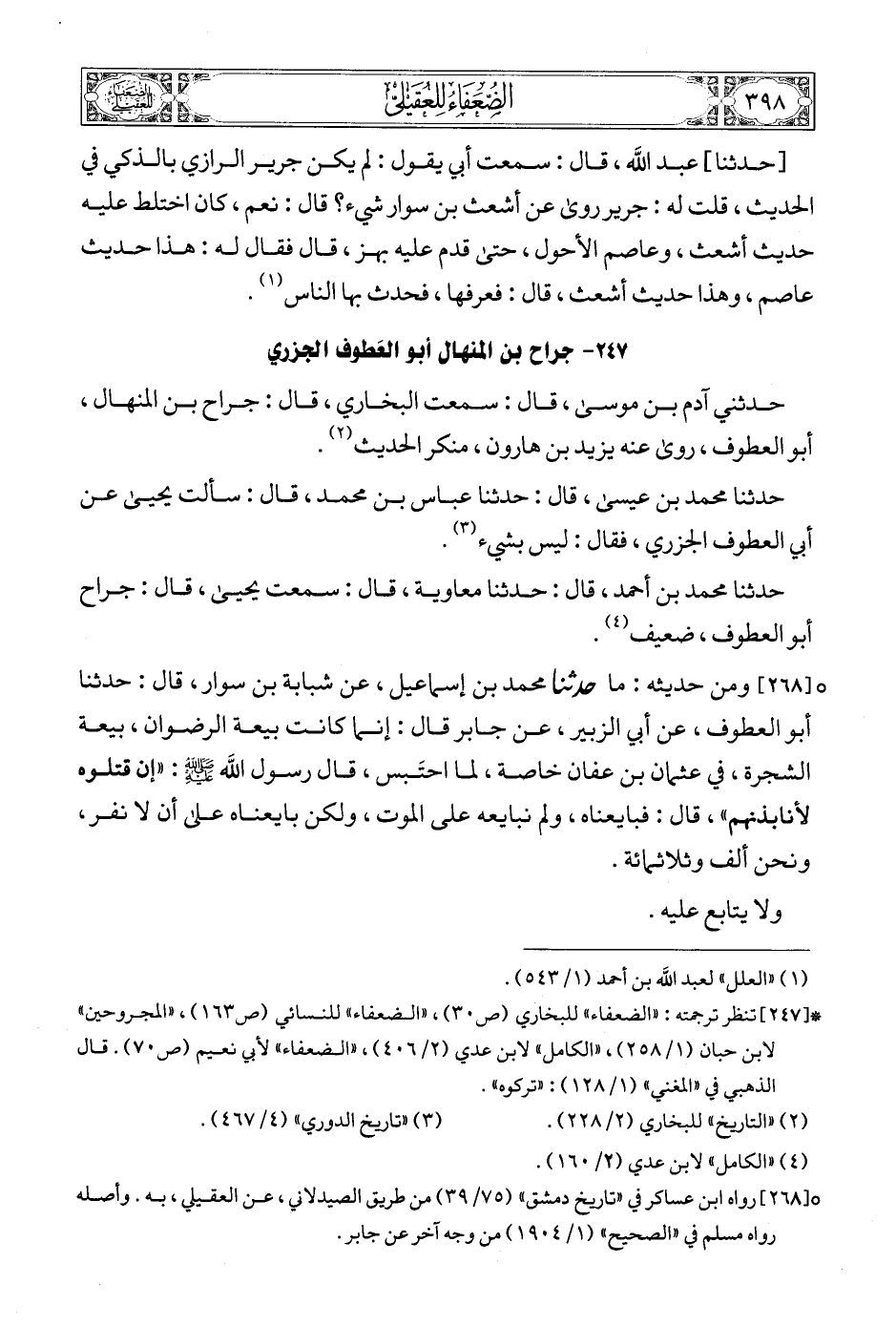 (6) [268] رواه ابن عساكر في «تاريخ دمشق» (75/ 39) من طريق الصيدلاني، عن العقيلي، به. وأصله رواه مسلم في «الصحيح» (1/ 1904) من وجه آخر عن جابر.