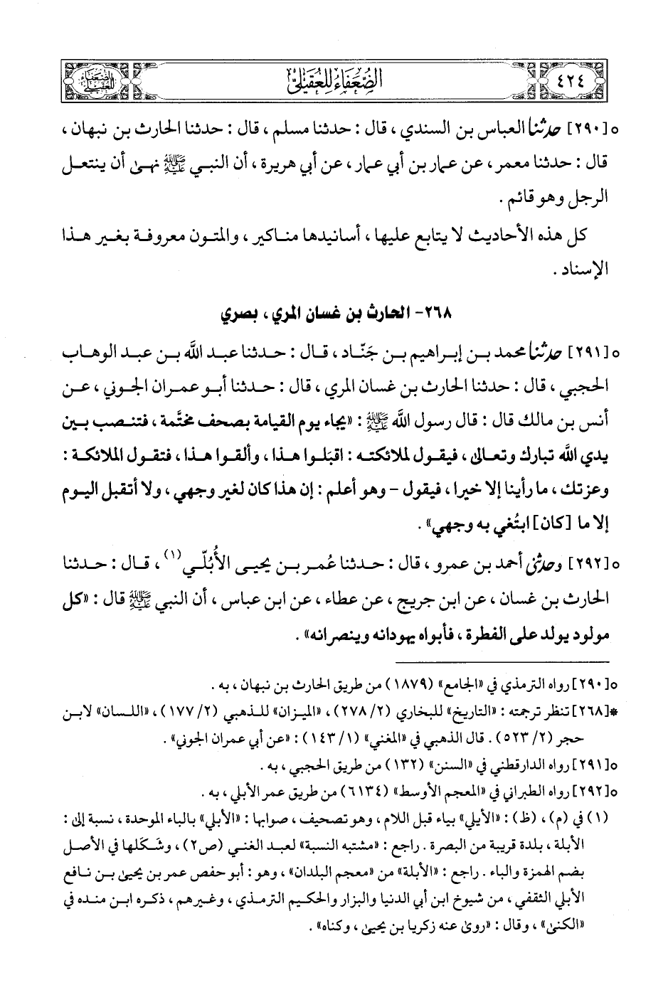 (2) * [268] تنظر ترجمته: «التاريخ» للبخاري (2/ 278)، «الميزان» للذهبي (2/ 177)، «اللسان» لابن حجر (2/ 523). قال الذهبي في «المغني» (1/ 143): «عن أبي عمران الجوني».