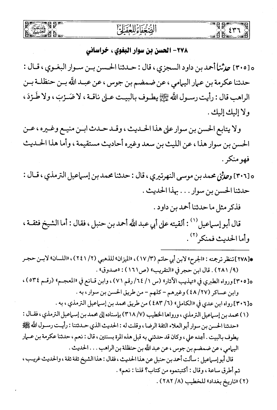 (3) [306] رواه ابن عدي في «الكامل» (6/ 483) من طريق محمد بن إسماعيل الترمذي، به.