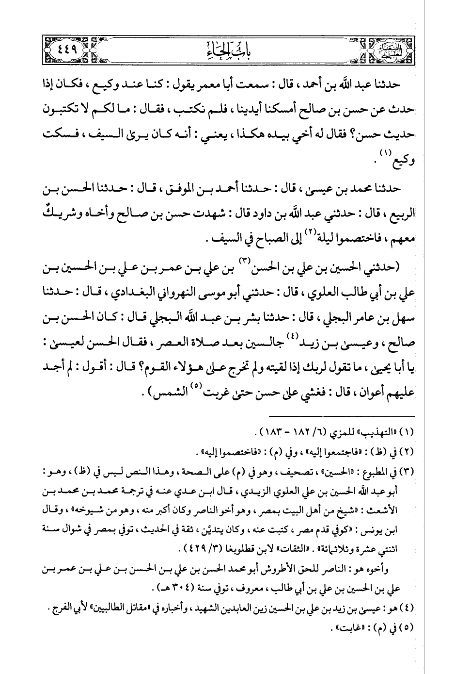 (4) هو: عيسى بن زيد بن علي بن الحسين زين العابدين الشهيد، وأخباره في «مقاتل الطالبيين» لأبي الفرج.
