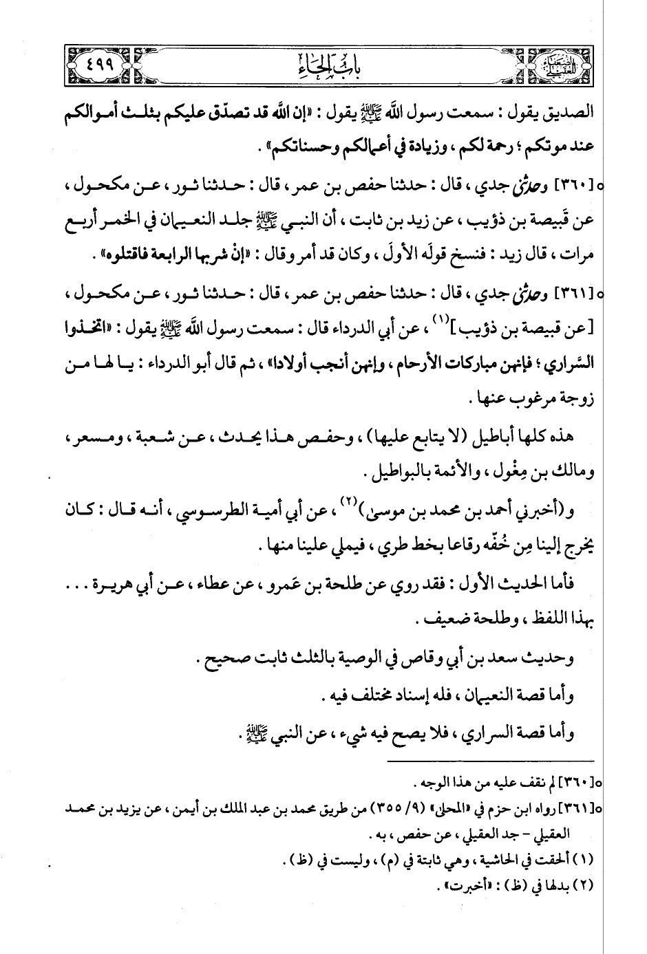 (2) [361] رواه ابن حزم في «المحلى» (9/ 355) من طريق محمد بن عبد الملك بن أيمن، عن يزيد بن محمد العقيلي - جد العقيلي، عن حفص، به.