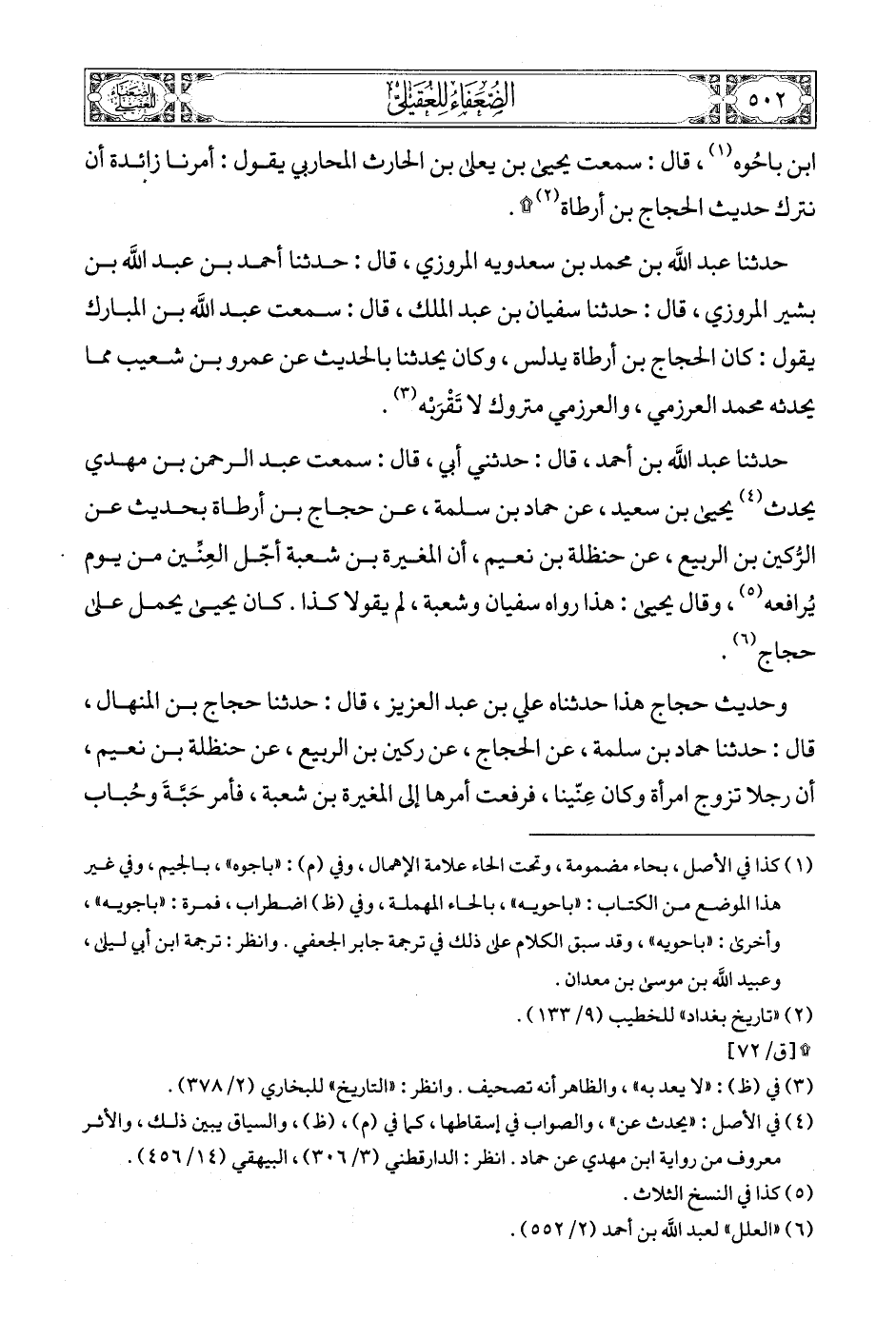 ابن باحُوه (1)، قال: سمعت يحيى بن يعلى بن الحارث المحاربي يقول: أمرنا زائدة أن نترك حديث الحجاج بن أرطاة (2) (3) ?.