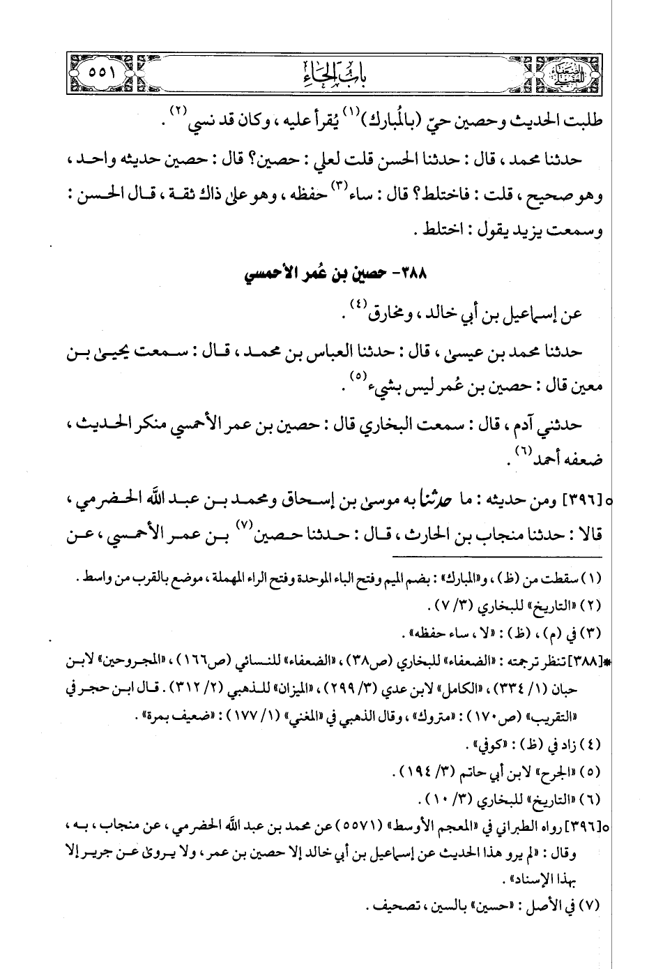 (8) [396] رواه الطبراني في «المعجم الأوسط» (5571) عن محمد بن عبد الله الحضرمي، عن منجاب، به، وقال: «لم يرو هذا الحديث عن إسماعيل بن أبي خالد إلا حصين بن عمر، ولا يروى عن جرير إلا بهذا الإسناد».