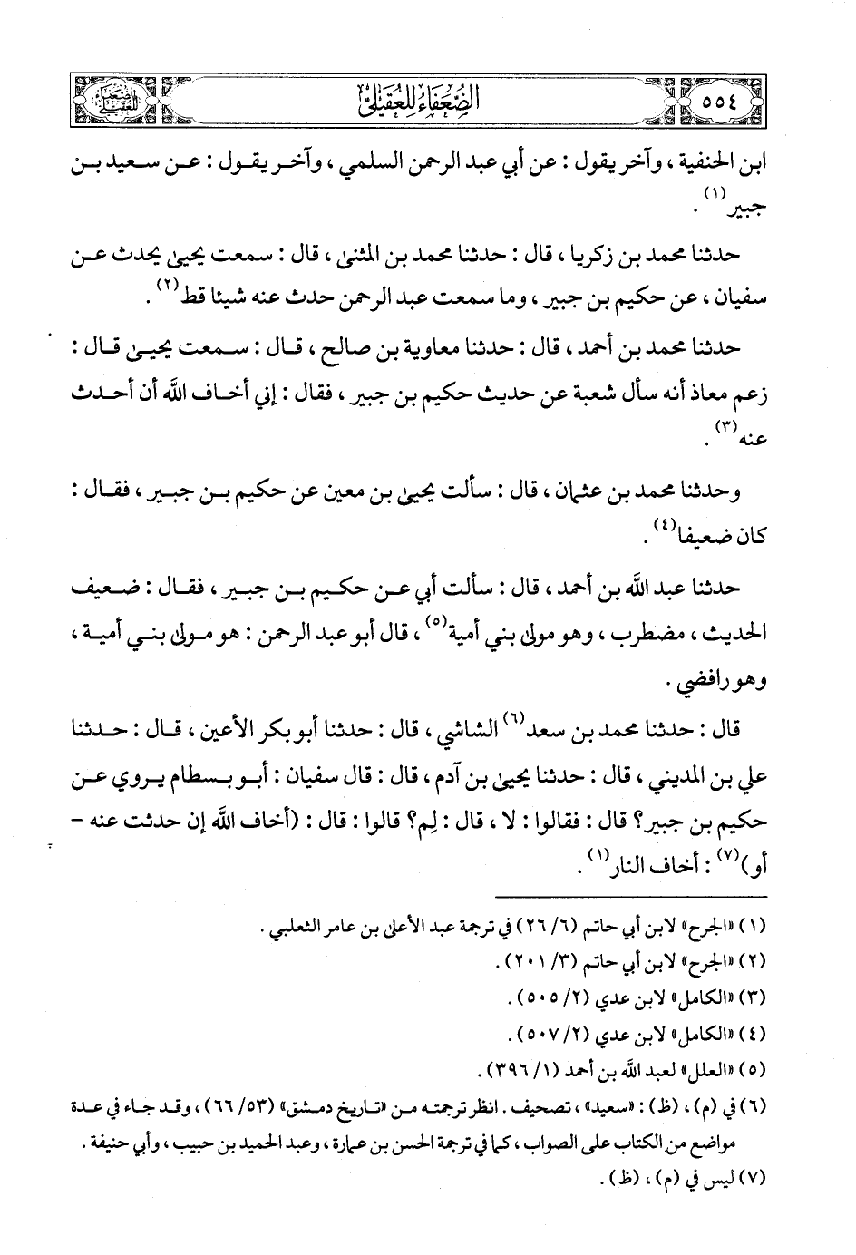 (1) «الجرح» لابن أبي حاتم (6/ 26) في ترجمة عبد الأعلى بن عامر الثعلبي.